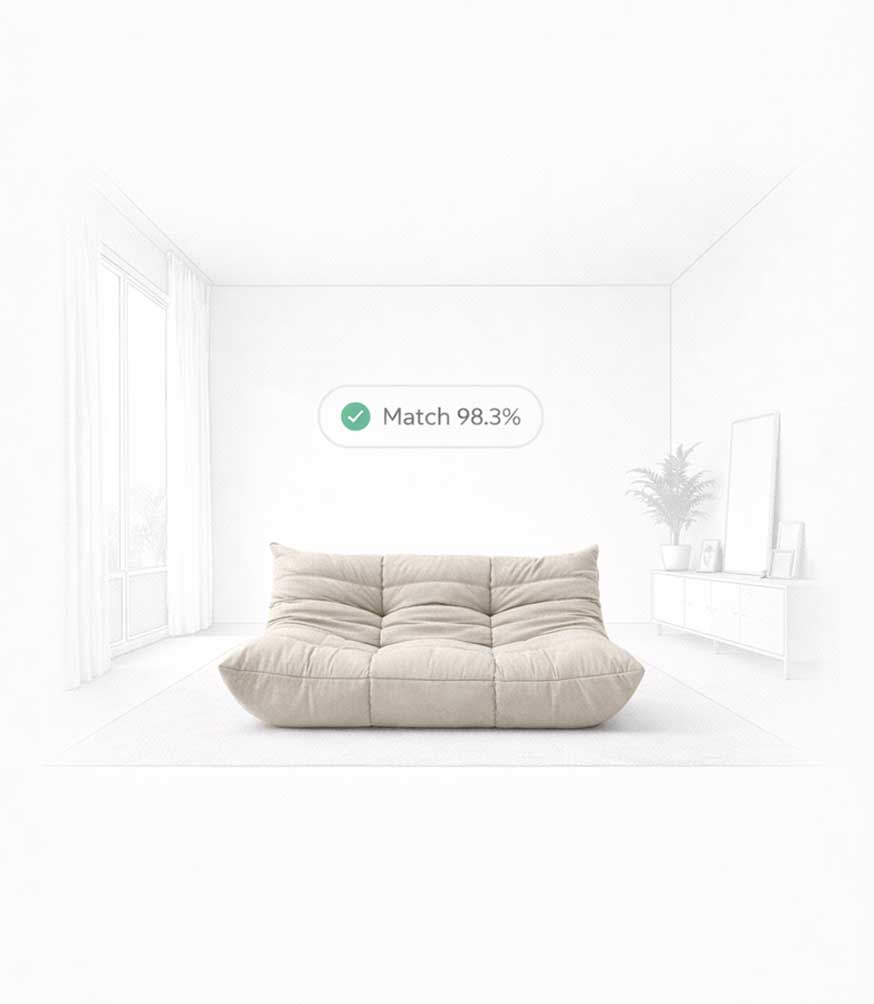 Ambic lets you explore furniture directly inside a digital twin of your room. This makes it easy to check fit and feel before making a decision